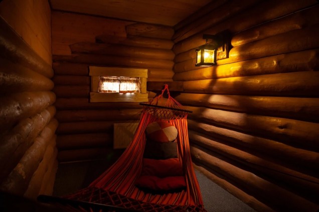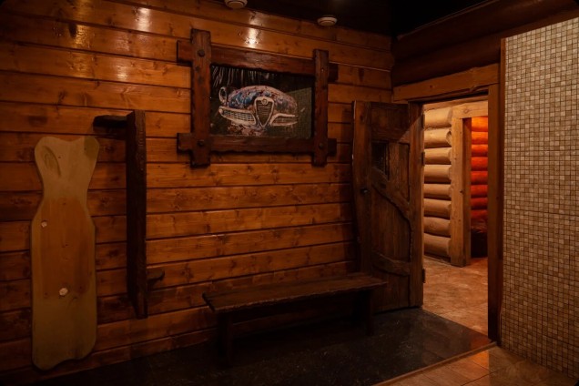 На втором этаже комплекса распологается большой двухместный гамак, профессиональный русский бильярд и покерная комната с вырезанным прямо в стене джокером... 2 уютные комнаты отдыха с уже застеленным чистым постельным бельем для отдыха после банных процедур.